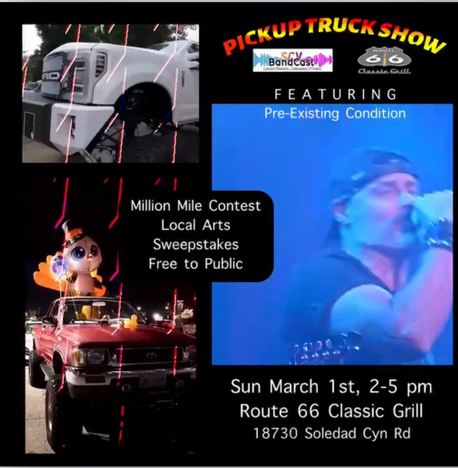 Live Music and Truck Show Sunday March 1st. Bring your rig, large or small. And it doesn't have to be a truck - bikes, classic cars, modifieds, low riders, customs, off-roaders - we would love to see them all. Great Food and drink, outdoor patio. Relax, Refresh and Refuel at Route 66 Classic Grill.
